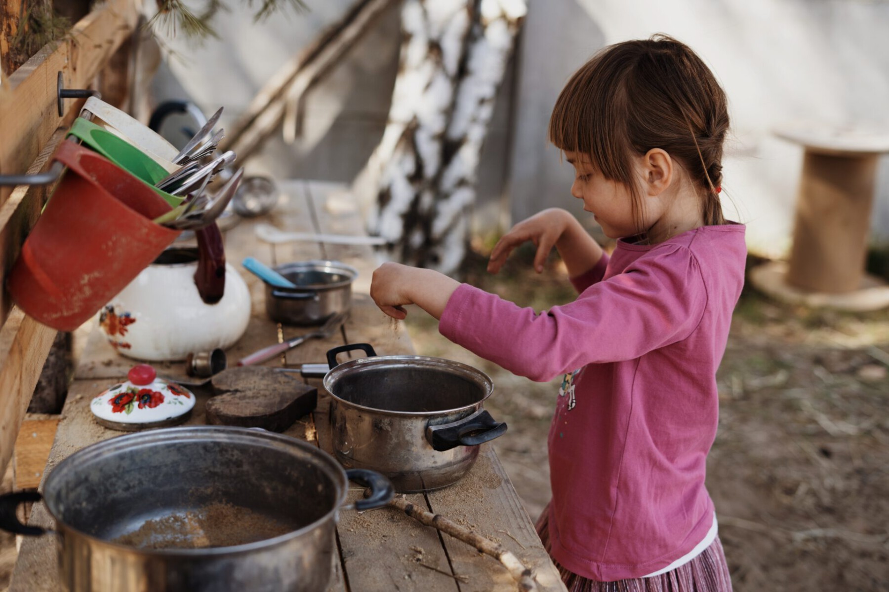 zabawy w kuchni błotnej, budowanie szałasów, pikniki